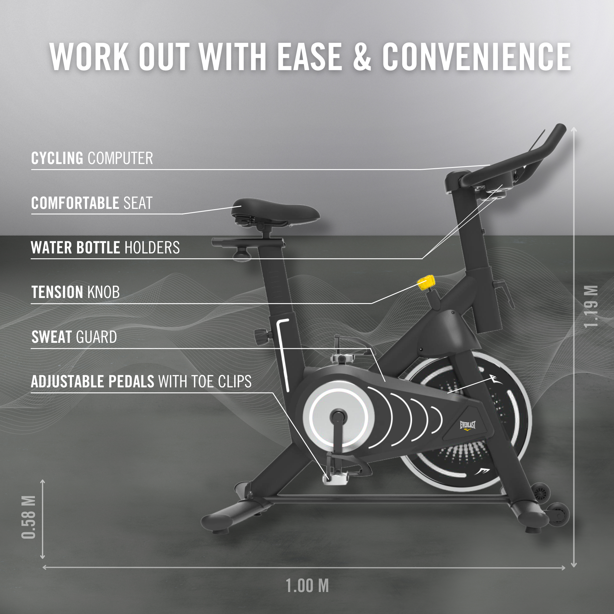 The Everlast Enduro Spin Bike is built to deliver a refined, performance-driven indoor cycling experience for serious home training. Featuring a 6kg magnetic flywheel and advanced magnetic brake system, it provides exceptionally smooth, quiet and consistent resistance, ideal for endurance rides, interval training and high-intensity cardio sessions. The belt-drive transmission ensures efficient power transfer with minimal maintenance, while adjustable resistance allows riders to precisely control workout intensity, supported by a press-down brake system for immediate stopping when required.